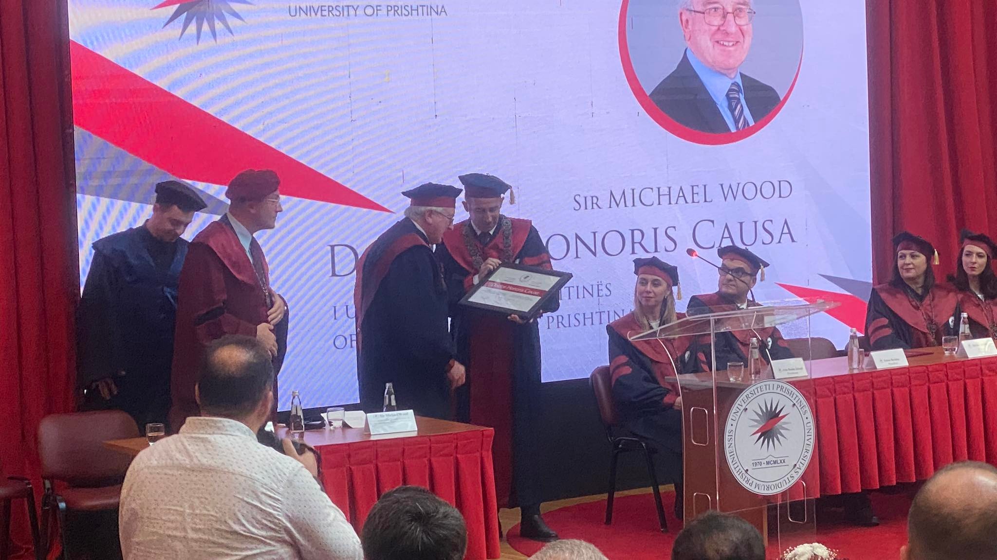 Universiteti i Prishtinës “Hasan Prishtina” ka dekoruar Sir Michael Wood me titullin “Doctoris Honoris Causa”.