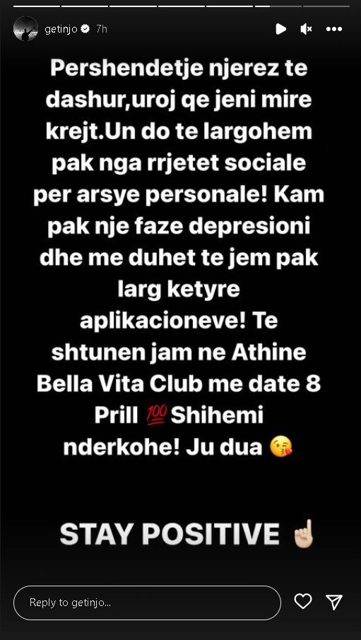 Ish-banori i Big Brother VIP Kosova ka thënë se është duke kaluar një fazë depresioni dhe për këtë arsye ka nevojë të largohet nga të gjitha mediat sociale.