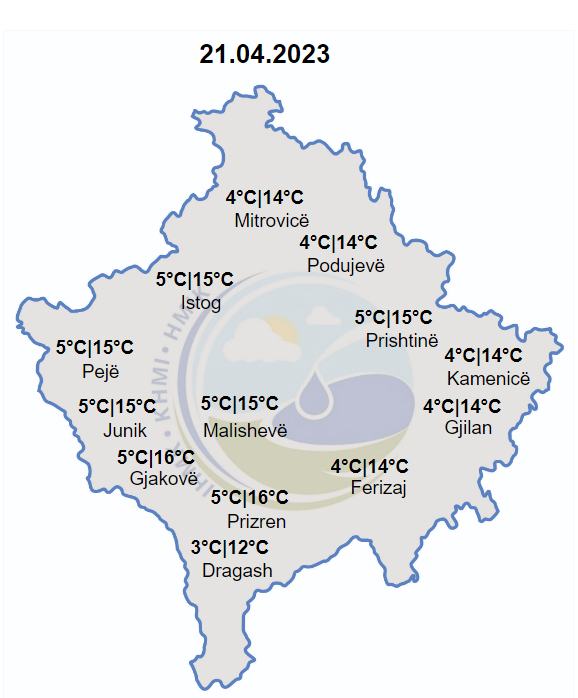 Temperaturat minimale do të jenë prej 5 deri 5 gradë ndërsa maksimalet nga 12 deri 16 gradë celsius.