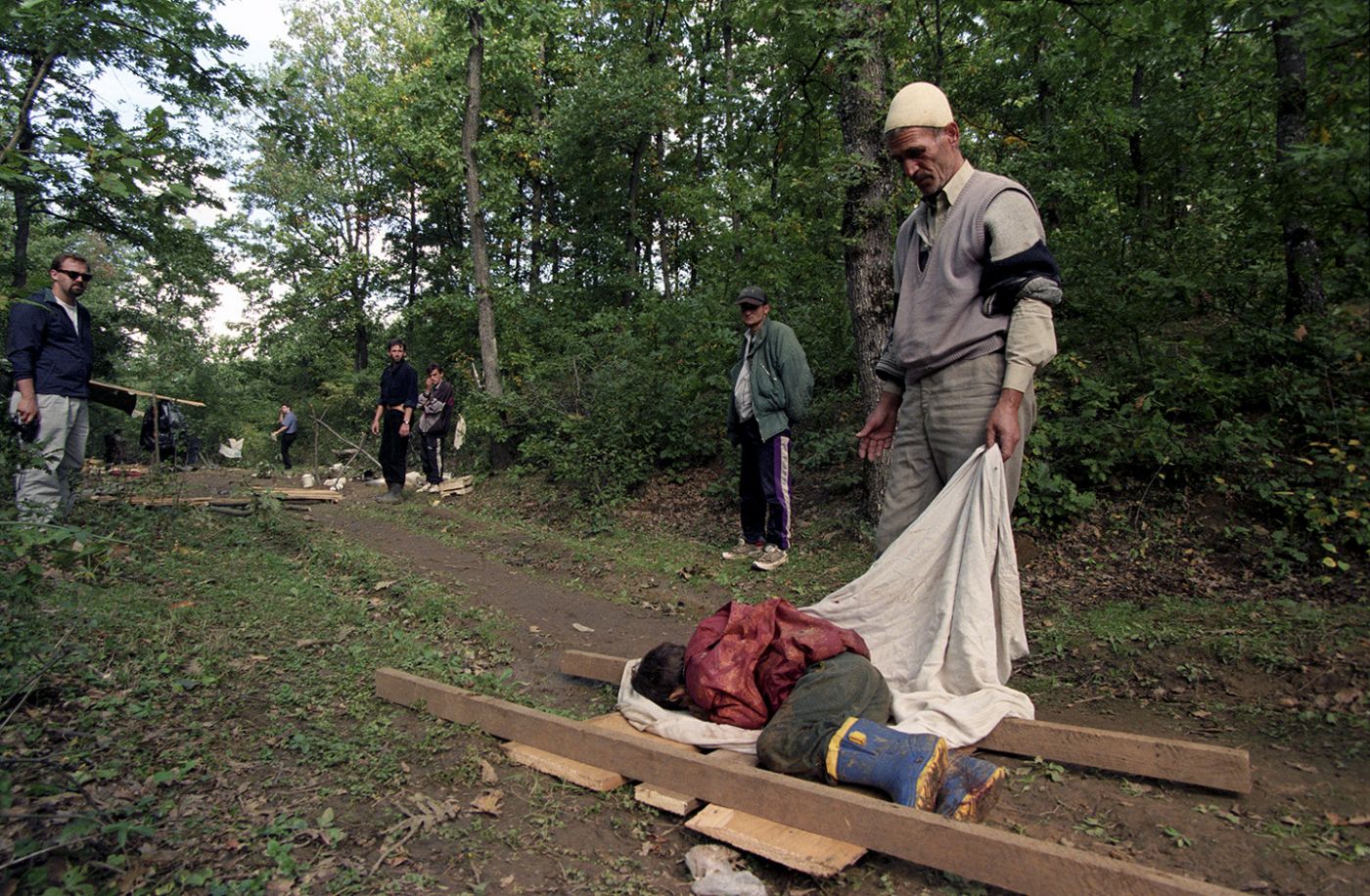”Kur arritëm në vendngjarje pamë disa njerëz teksa bartnin kufomat nga fusha pranë fshatit. Ata formuan bartës prej druri që t’i bartnin kufomat. Ne ecëm përgjatë pyllit dhe pamë një tendë ku kishin qëndruar të vrarët. Një foshnje ishte qëlluar në kokë”.