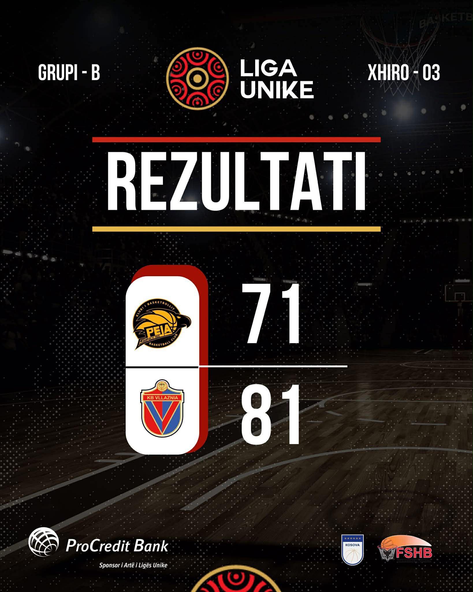 GO+ Peja ka pësuar disfatë në kuadër të Ligës Unike, duke u mposhtur në shtëpi nga Vllaznia e Shkodrës me rezultat 81:71.