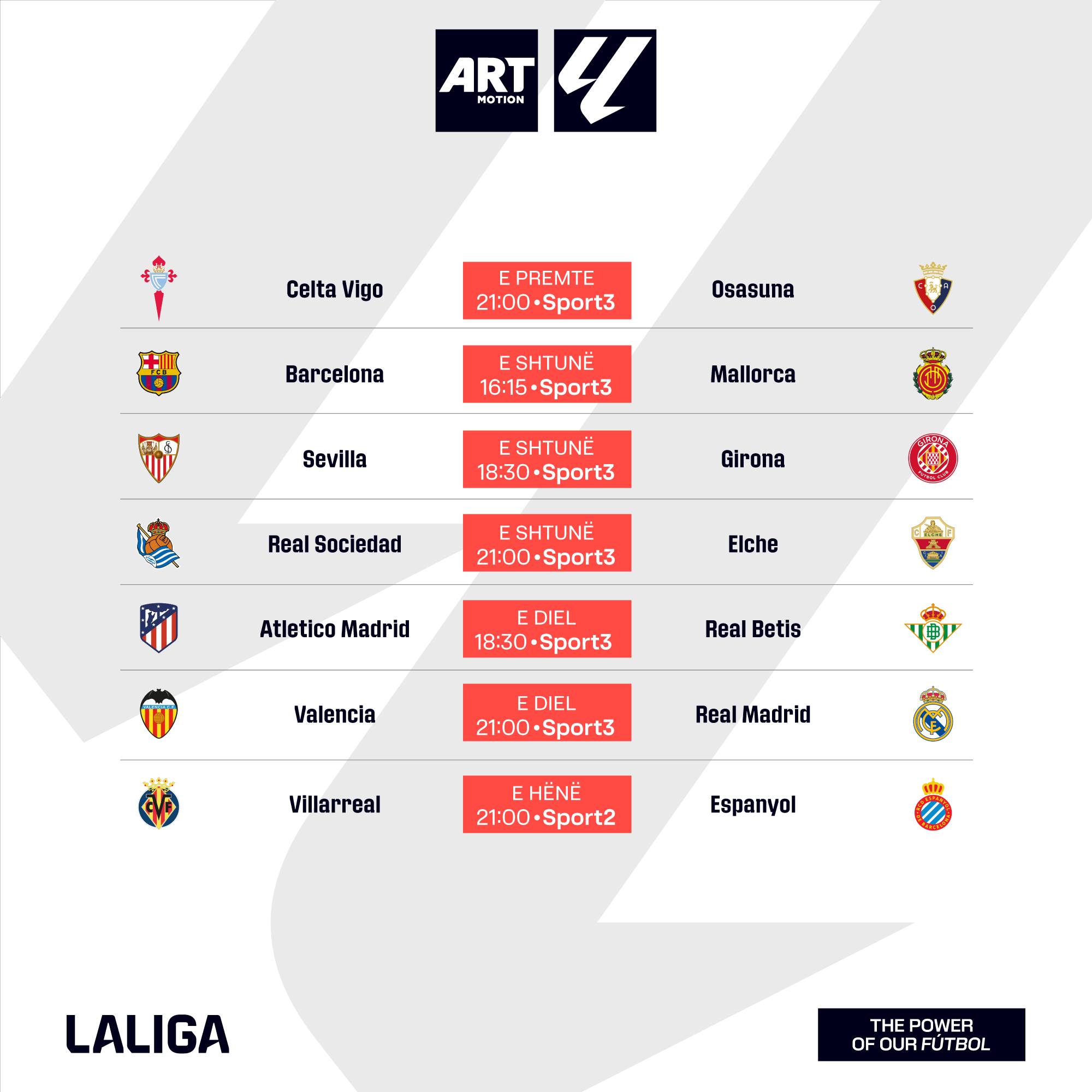 “Los Blancos” kanë qëllim vetëm fitoren duke u bazuar te forma e jashtëzakonshme e Kylian Mbappe. Më poshtë ndeshjet e kësaj jave që do të transmetohen në kanalet Sport të platformës Artmotion.