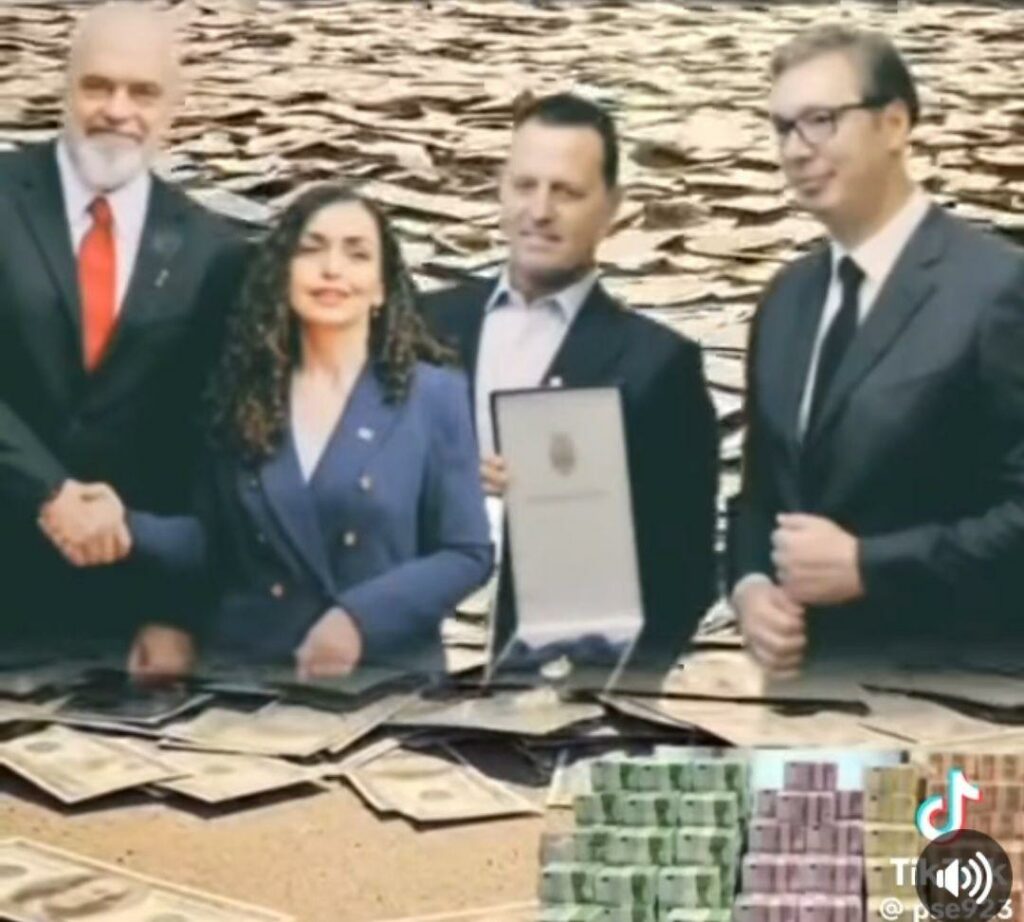 Dy ose tri janë lajtmotivet që shtyhen përpara. Një: Vjosa Osmani konspiron dhe synon puç [sic] të shtyrë nga Edi Ramën. Dy: Aty është përfshirë [sic] Grenelli. Tre: Krejt kjo e fascilituar [sic] nga Baton Haxhiu. Pafund gjenerime me inteligjencë artificiale është e prodhuar për të dhënë këtë pamje me Osmanin duke kërcyer me Grenellin, Haxhiun dhe Ramën.